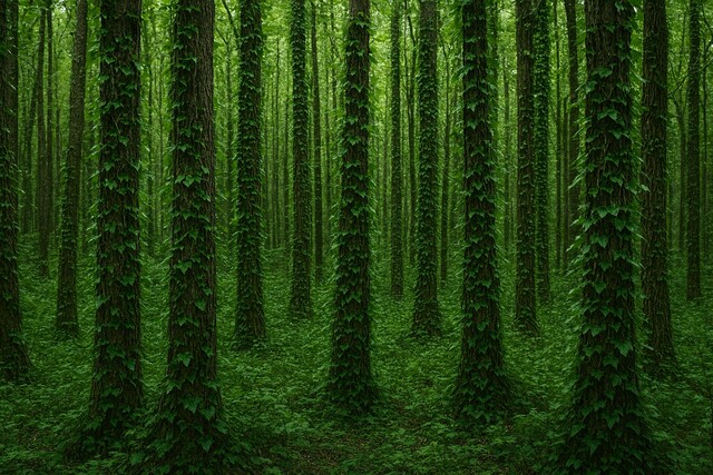 En esas condiciones, la luz entraba perfectamente hasta el suelo. Cuando los dinosaurios desaparecieron, los bosques crecieron con mucha menos distancia entre los árboles. Estaban tan juntos que la luz ya no llegaba al suelo, por eso, para conseguir la luz, muchas plantas evolucionaron y se hicieron trepadoras. Trepaban por los árboles. Subían para conseguir la luz del sol, tan necesaria para su desarrollo.