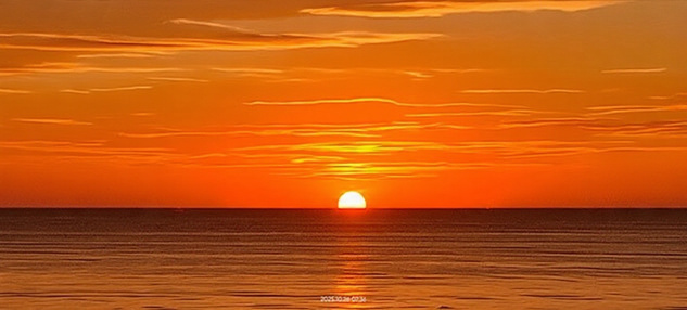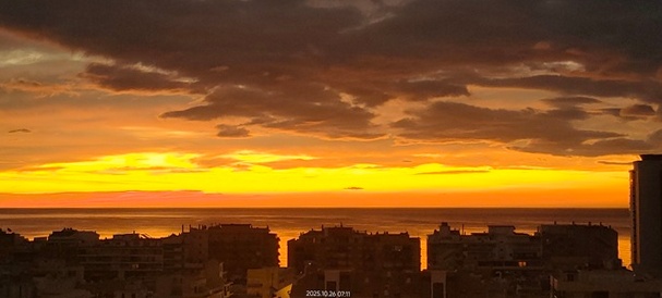 Cada amanecer viendo en el horizonte el mar es un espectáculo visual, una película con formas y colores cambiantes que nunca se repite. No hay dos amaneceres iguales: cada uno es un instante irrepetible, un cuadro que se pinta y se borra en cuestión de minutos. Hay amaneceres amarillos, los hay rosas, los hay de un profundo rojo y, a veces, los hay violetas. La noche se desgarra en amarillos, los amarillos se transforman en naranjas, los naranjas en rojos, y los rojos se abren en destellos dorados que iluminan la piel del agua.