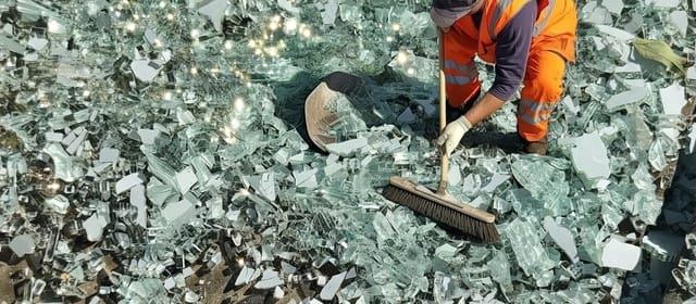Barrendeos recogiéndo los cristales.