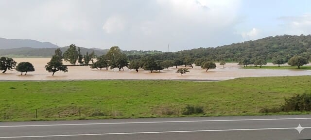 Si nos fijamos en la ruta que seguimos, primero, paramos a desayunar en San Roque, después pasamos por Los Barrios, por el parque natural de los alcornocales, Alcalá de los Gazules… Todos lugares donde había habido fuertes lluvias. Así que nos encontramos tierras anegadas. La borrasca del 3 al 6 pasó como un animal inquieto: rugió, golpeó, se retorció entre montes y valles, y cuando por fin se marchó, dejó tras de sí un silencio extraño, casi solemne.