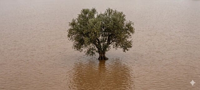 Los pantanos estaban desbordados. El agua llegaba a sitios que llevaban mucho tiempo secos, tanto que habían crecido árboles. Muchos de ellos hoy estaban sumergidos hasta la mitad del tronco, quietos, erguidos, como guardianes que no abandonan su puesto ni cuando el agua les llega al pecho. Había algo profundamente simbólico en esa imagen: la resistencia silenciosa, la paciencia de lo que lleva siglos aquí, viendo pasar temporales, veranos abrasadores, otoños caprichosos. El agua rodeaba sus raíces como un abrazo frío, pero ellos seguían ahí, firmes, esperando que el nivel bajara y la tierra volviera a ser tierra.