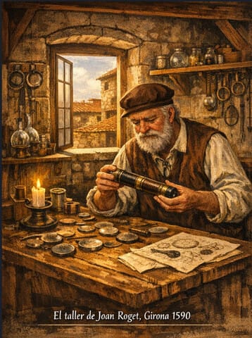 Joan (o Juan) Roget no era un inventor solitario encerrado en un taller oscuro, sino parte de una dinastía de ópticos. Nacido en Angulema y establecido en Girona, trabajó entre 1550 y 1617/24 fabricando anteojos de gran calidad. Su familia dominaba el arte de tallar lentes con una precisión que, para la época, rozaba lo prodigioso.